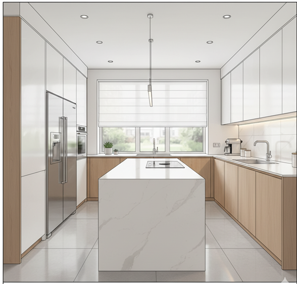 換気経路の制限:ダクトの位置が決まっているため、アイランドキッチンに変更するには特別な工事が必要になる場合も。