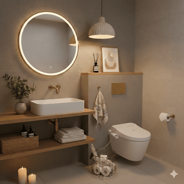 間接照明の導入: コンセント式や電池式のLEDキャンドルを棚に置くだけで、夜のトイレがリラクゼーションルームに。