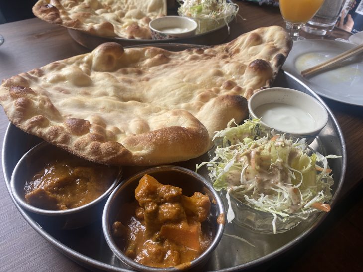 それとカレーにはナンがついてくるんですが、これがびっくりするくらい大きくて!ふわもちの食感で食べ応えも抜群。カレーと一緒にちぎりながら食べると最高でした🫓