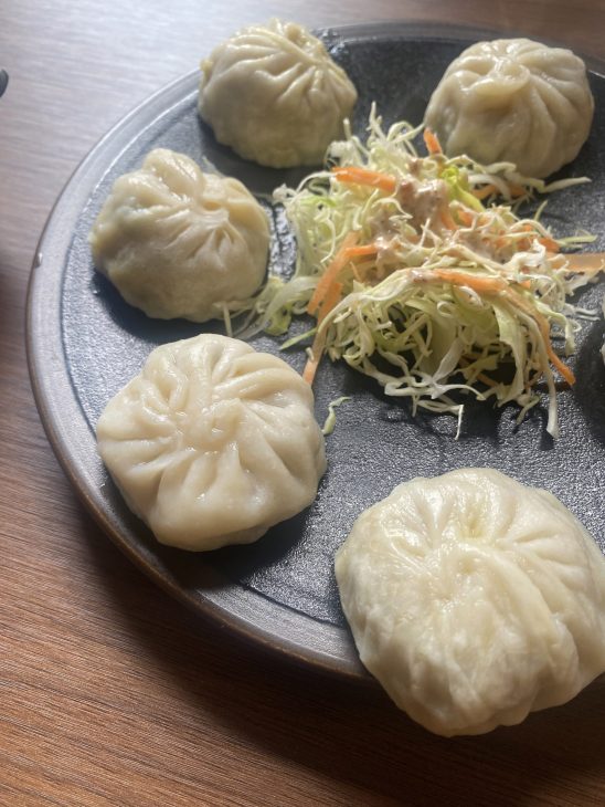 そして今回いちばん感動したのが、このモモ!ネパールの蒸し餃子なんですが、「餃子」と聞いてイメージするものとはまったく別物です。